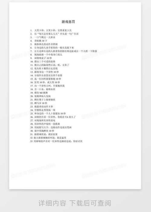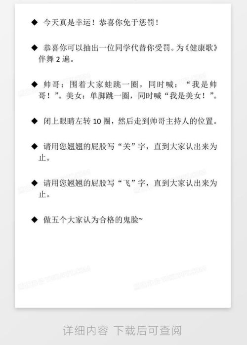 怎么样,这些惩罚小游戏是不是让你觉得既有趣又刺激呢?快来试试吧,保证让你的聚会更加欢乐!记得,玩得开心最重要哦!